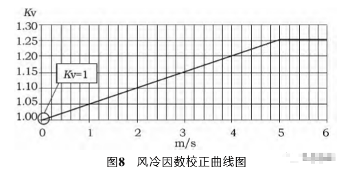 4)由表1可知,熔斷器采用自然對流冷卻,由于沒有對熔斷器采用額外散熱處理,查閱圖8風冷因數(shù)校正曲線圖,可得風冷校正因數(shù)Kv=1。