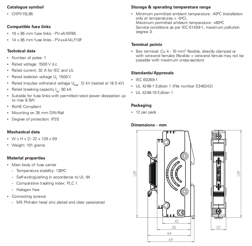 CHPV15L85 Bussmann光伏座子
