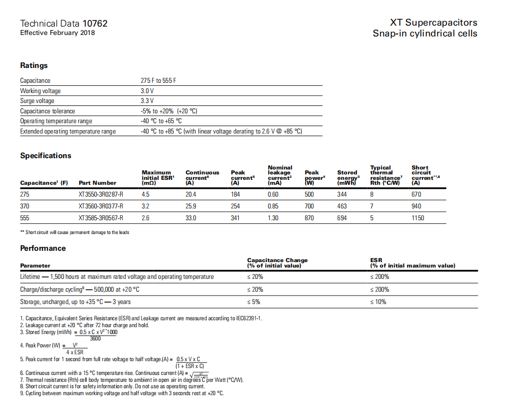 XT系列超級電容EATON XT3560-3R0377-R XT3585-3R0567-R XT3550-3R0287-R