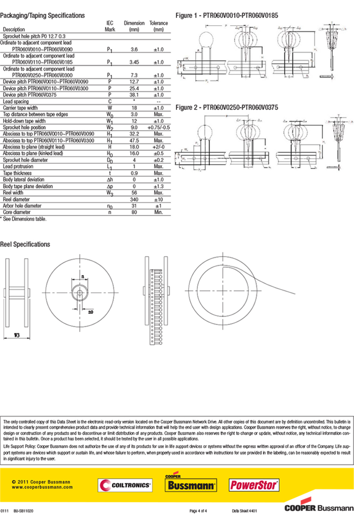 Bussmann PTR060V0090-TR 可恢復保險絲 圓形 插件保險絲