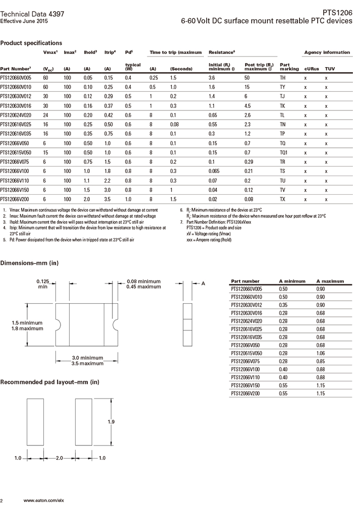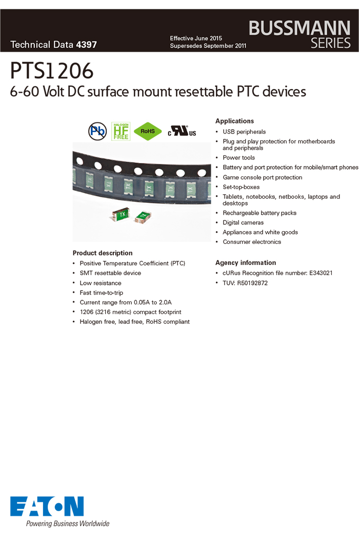 Bussmann PTS1206系列 自恢復(fù)貼片保險絲